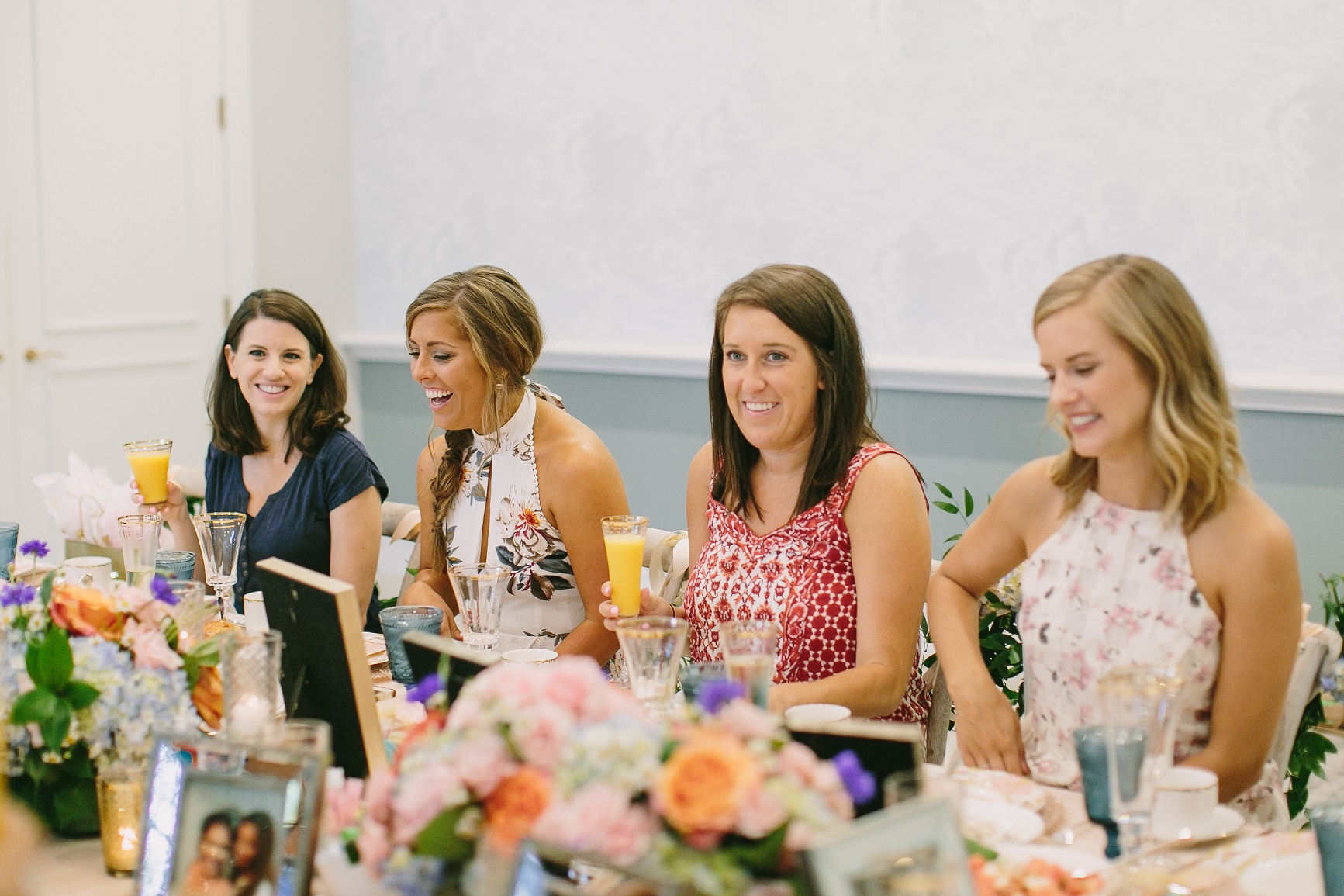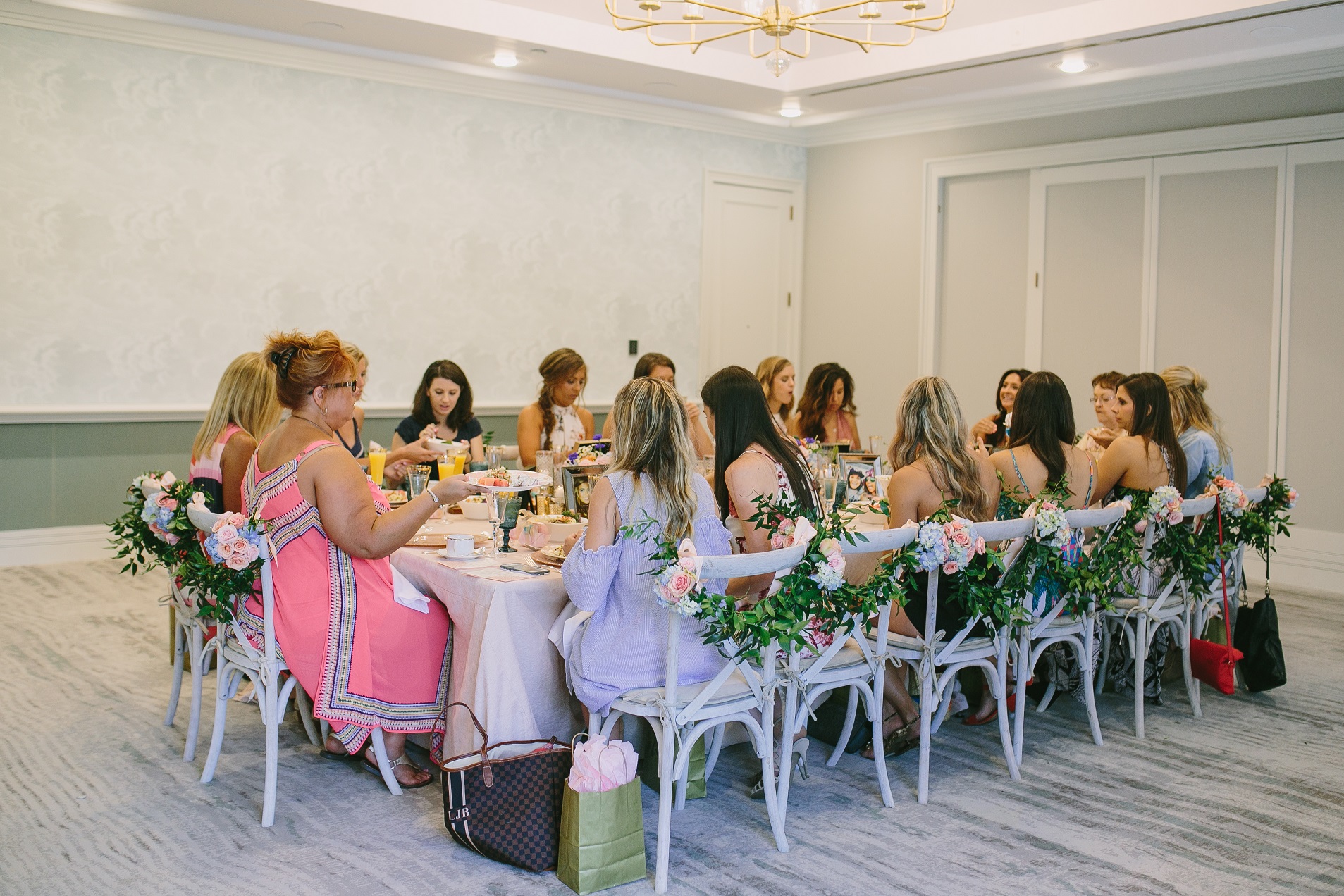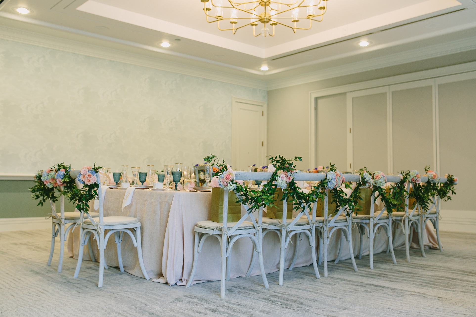 Where to begin?? Since the first meeting with Lauren and Ethan I knew that I would have the best time planning their wedding. And I was exactly right! Lauren, her mom, and myself all cried that Sunday after their big day and immediately wanted to do it all again! Lauren and Ethan wanted their weekend to not only be about their commitment to one another but to celebrate and honor everyone that was there to witness it. Lauren’s mom (momma Kim) threw the sweetest bridal luncheon for Lauren the day before the wedding! It was stunning with beautiful floral, china, and the most amazing chair swags you’ve ever seen! The girls sipped on mimosas, and enjoyed their lunch before heading down to the spa to get their nails and toes ready for the big day!