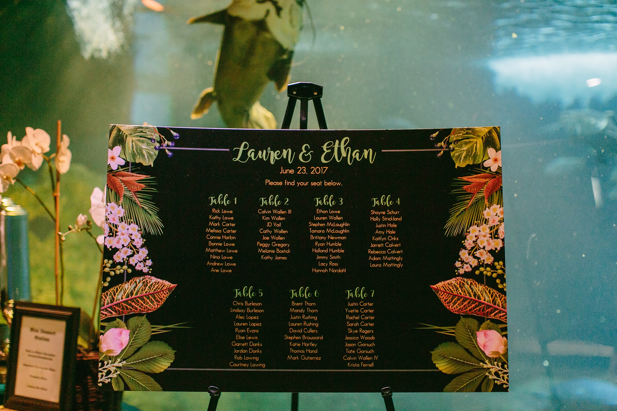 Ethan is one of 4 boys! So rehearsal dinners are nothing new to Rick and Kathy! Fun fact about Lauren, her favorite movie is the Little Mermaid and even sent Ariel an invite to her wedding! I won’t totally call Ethan out, but he too has a favorite underwater Disney movie. So, naturally Rick and Kathy needed to have some sort of water element incorporated into the rehearsal dinner, so the Dallas World Aquarium was a no brainer!! Their friends and family wandered through the rain forest portion of the aquarium for cocktail hour and ended down in the gallery where everyone shared lots of stories and laughs of the bride and groom!