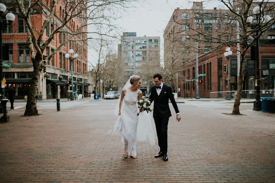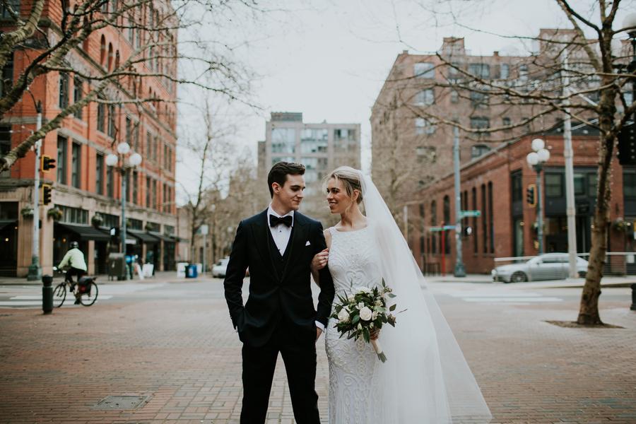 Addison and Zach married on a sunny February day in Seattle. (Seriously, it was sunny…in February….in Seattle!!!) Addison had dreamed of a candlelit wedding, and that she got. Candles framed Addison and Zach, candles on the window ledges, strung lights throughout the venue, candles on bookshelves and much more!
