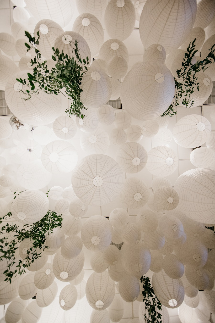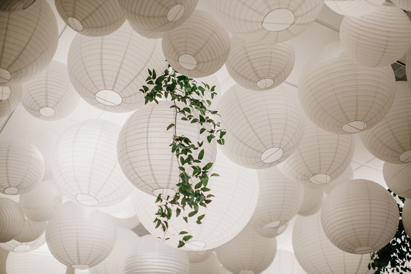 The celebrations began on Friday night with a Welcome Party for all 140 guests and just continued the celebrations for the wedding day! The ceremony had such a breath-taking view, that we didn’t want to add too much to take away from this space. So instead we focused on the reception. We covered the ceiling with over 1,000 white Chinese lanterns with hanging vines. It made it feel as if you were underneath the most beautiful clouds.