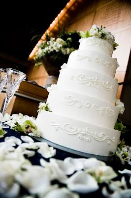 Jen’s Desserts ~ note that the scroll pattern is a replica of the design Sarah used throughout her paper elements. See above table number, chocolate bar, program, etc. which all carry the scroll design throughout.