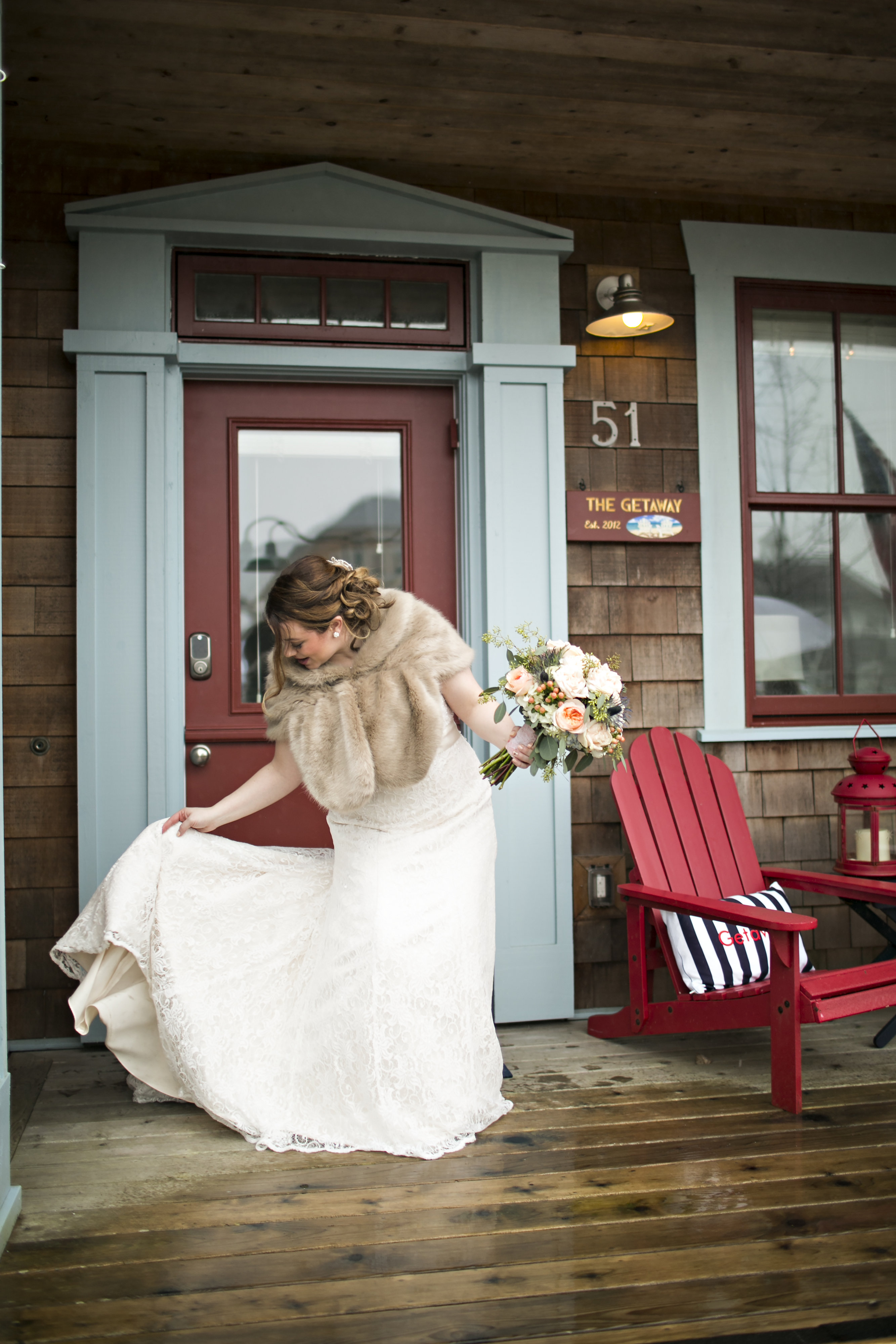 Their March coastal wedding, unfortunately brought rain instead of sunshine, but that didn’t damper the bride and groom’s spirits at all. They grabbed umbrellas and made the most out of the photos and their day!