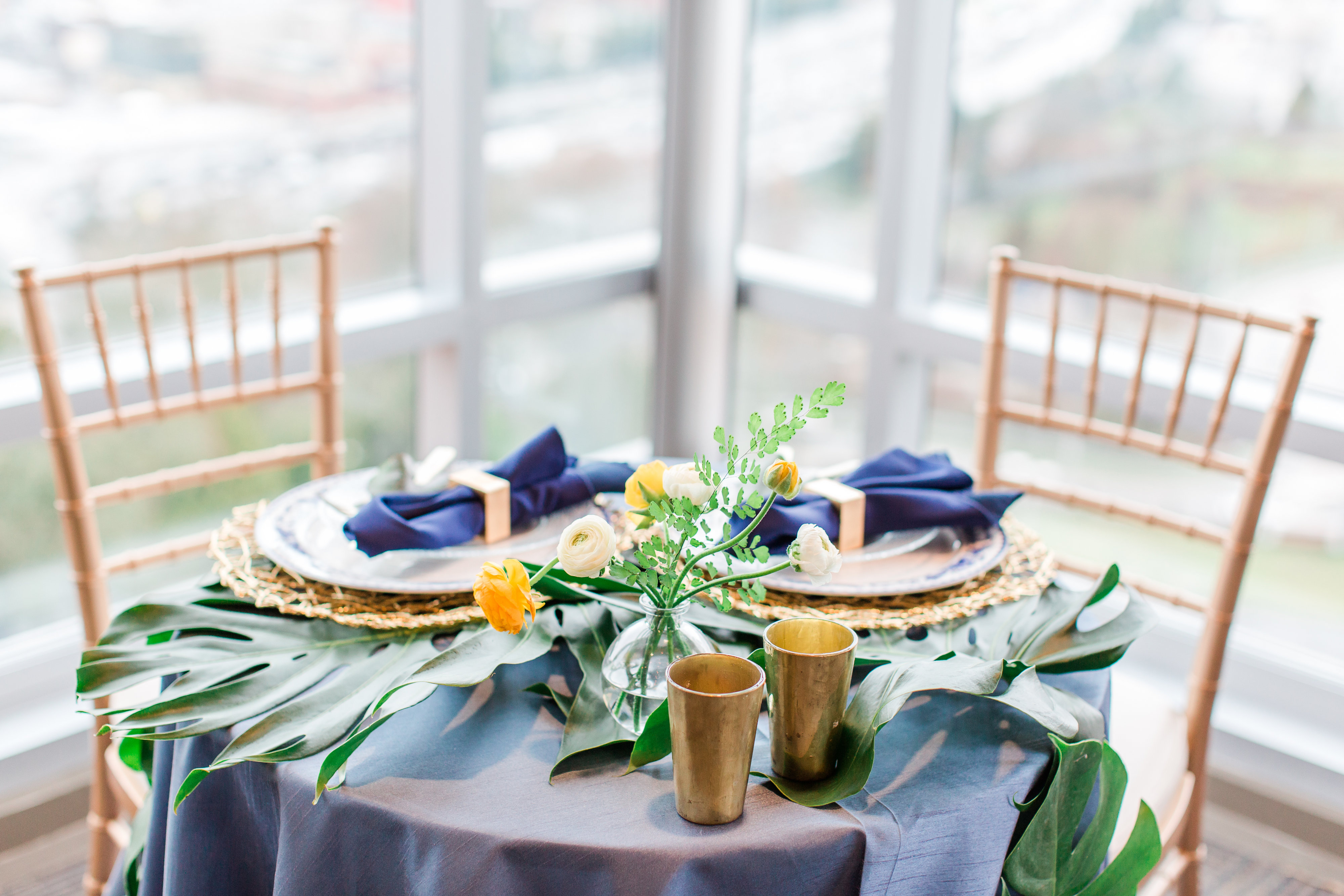 The open house finally happened in March. Navy, slate, yellow and gold became our color palette. Beautiful spring and summer blooms were provided by Bash and Bloom. Pedersens Event Rentals provided all of the rentals, including a few brand new lines of their dishware and glassware.